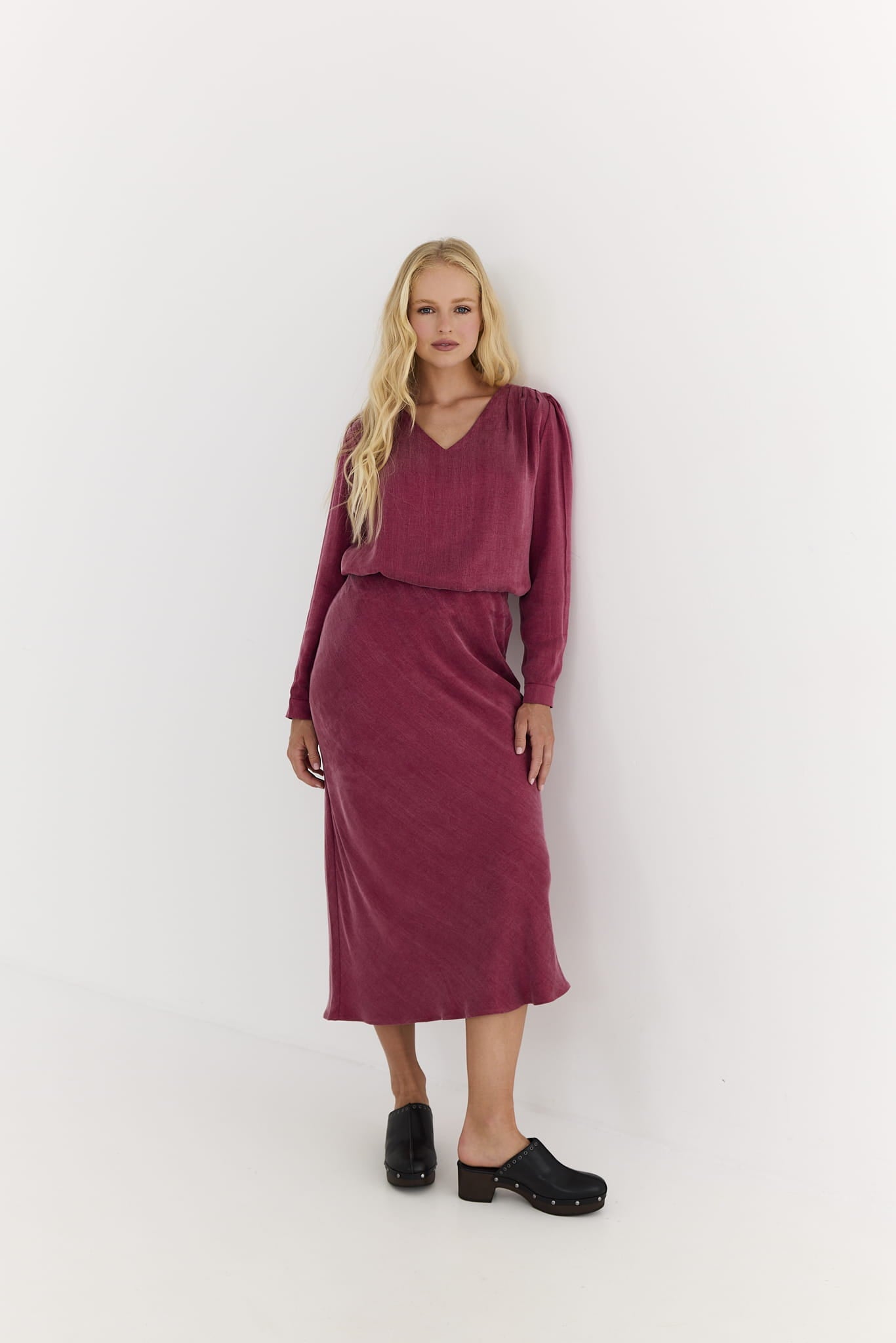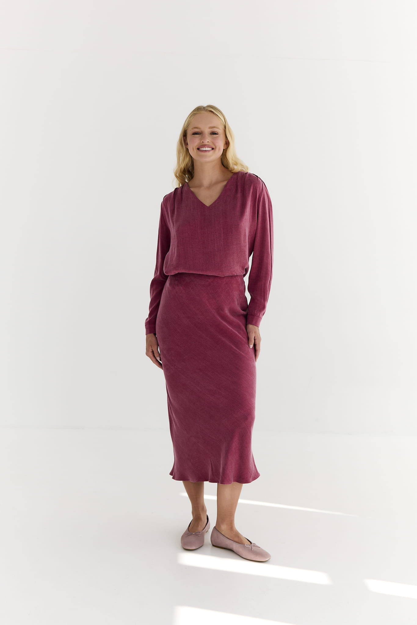 Uszyta z mięsistej tkaniny premium – wiskozy z lyocellem, która pięknie układa się w ruchu. Naturalnie oddychająca i miękka w dotyku, zapewnia komfort noszenia przez cały dzień, jednocześnie zachowując elegancki charakter. Idealna zarówno do minimalistycznych spodni, jak i w bardziej swobodnych zestawieniach.