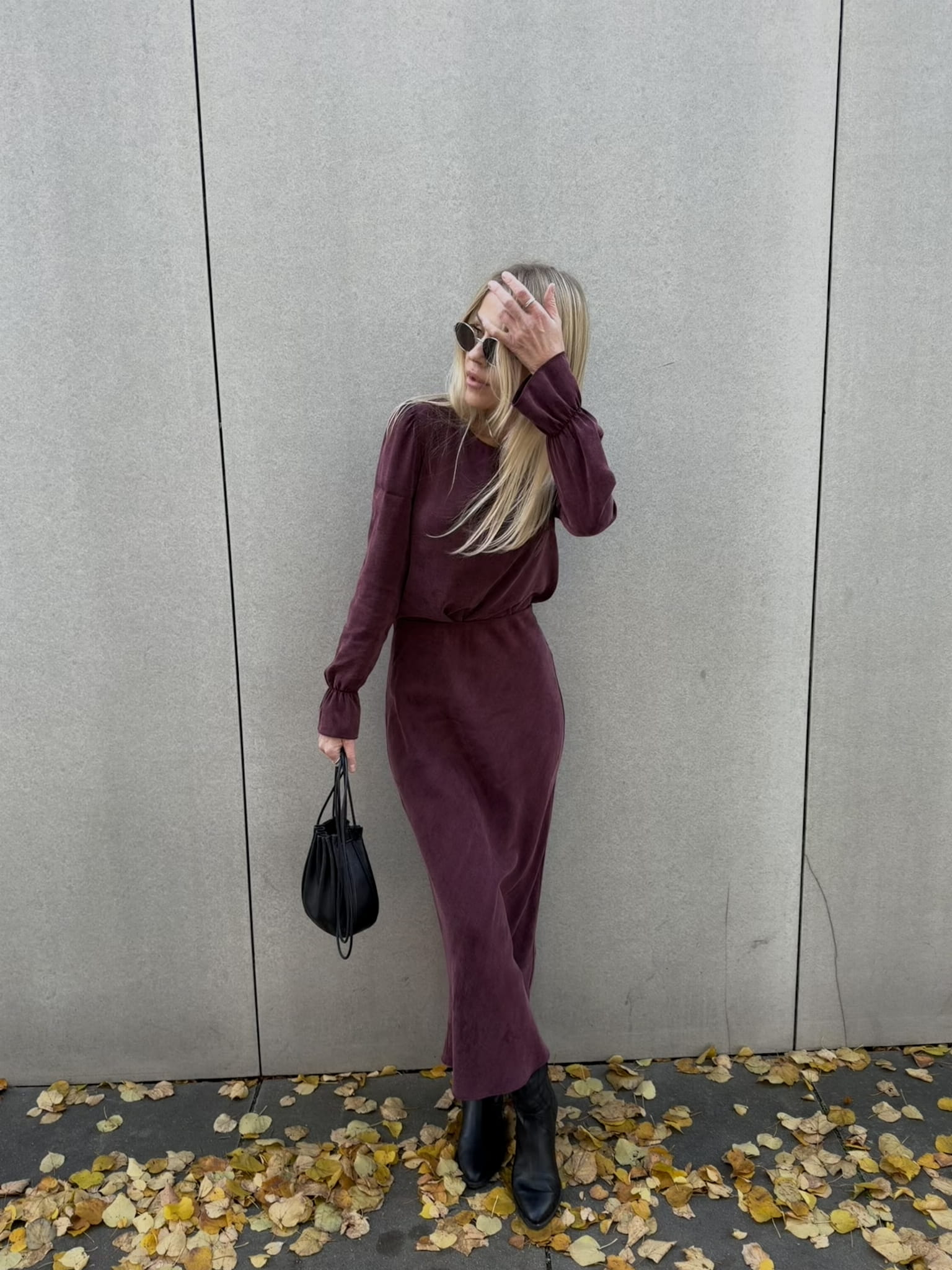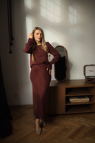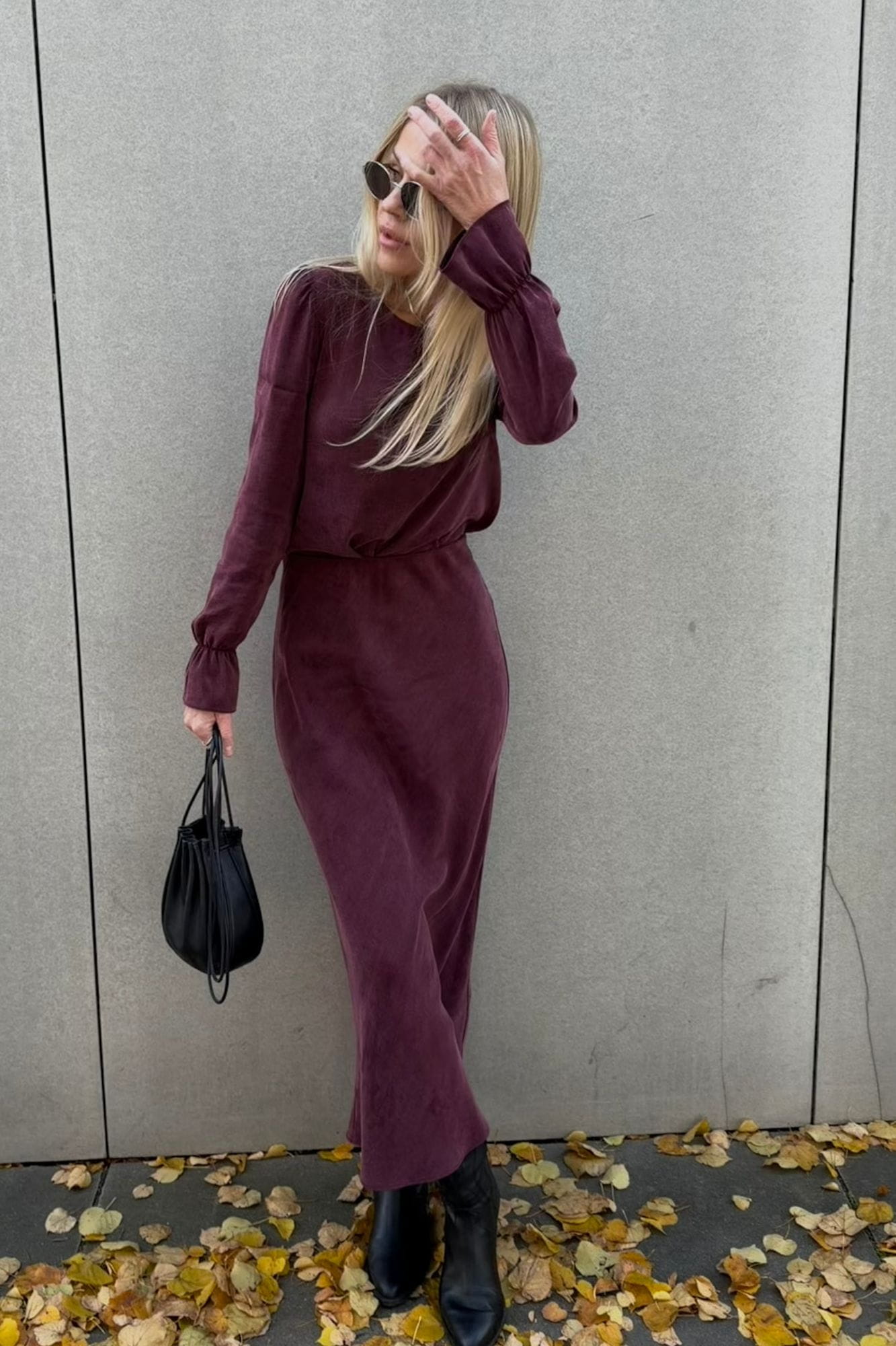 Uszyta z naturalnej mieszanki lyocellu i wiskozy - tkaniny delikatnej, przewiewnej i szlachetnej w dotyku. Gładko układa się na ciele, zapewniając wygodę przez cały dzień i miękkość charakterystyczną dla premium. Kolor ruby wine nadaje jej wyrazistości i elegancji, tworząc idealny balans między klasyką a nowoczesnością.