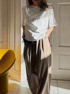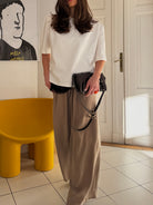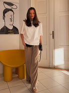 Spodnie Sway sprawdzą się zarówno w pracy, jak i podczas spotkań po godzinach. Łącz je z T-shirtem na co dzień, koszulą lub marynarką, aby stworzyć wyrafinowaną, minimalistyczną stylizację w każdym kontekście.