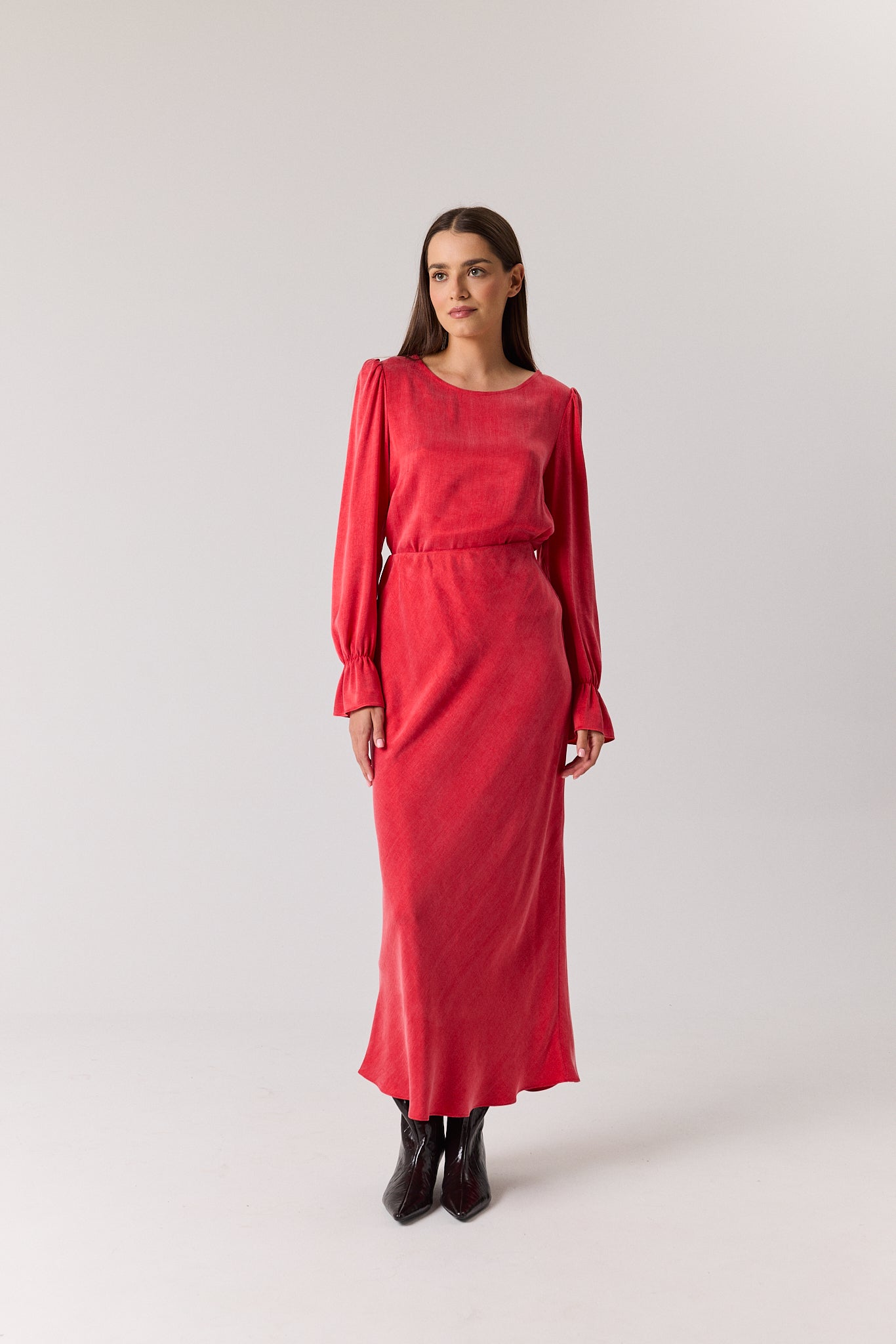 Uszyta z naturalnej mieszanki lyocellu i wiskozy - tkaniny delikatnej, przewiewnej i szlachetnej w dotyku. Gładko układa się na ciele, zapewniając wygodę przez cały dzień i miękkość charakterystyczną dla premium. Kolor pure red nadaje jej wyrazistości i elegancji, tworząc idealny balans między klasyką a nowoczesnością.