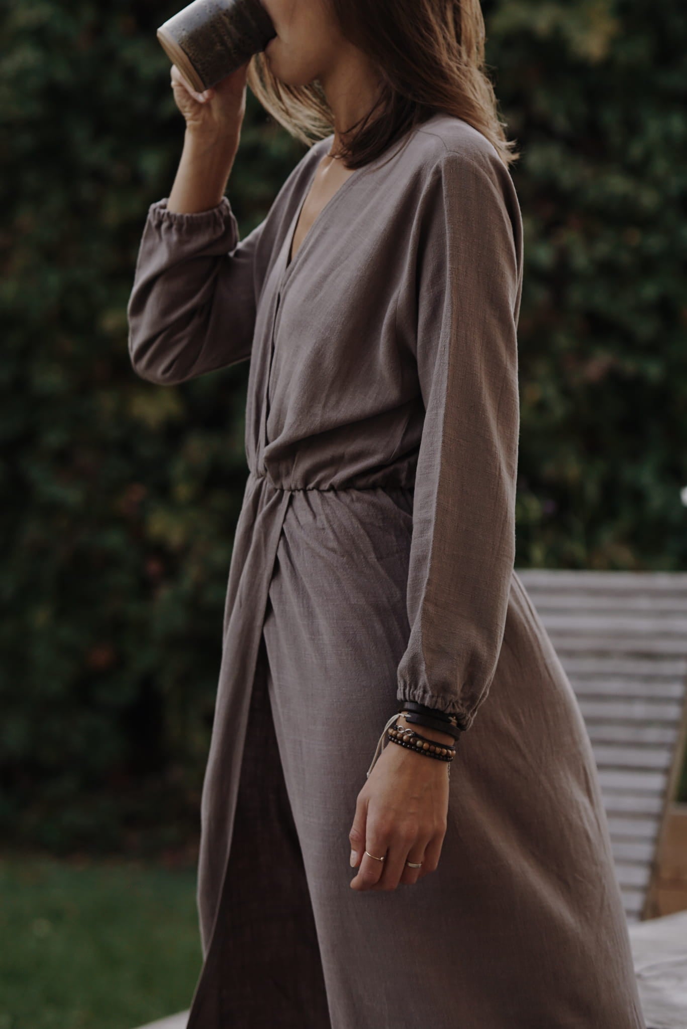 JUST dress to elegancka i wygodna sukienka o długości MIDI. W pasie ma wszytą gumkę, dzięki której dobrze dopasowuje się do sylwetki. Świetnie sprawdzi się w domu, jak i na rodzinnych uroczystościach. Dzięki swojej funkcjonalności (ma guzik przy dekolcie) jest świetna także dla kobiet oczekujących maleństwa, jak i w trakcie okresu karmienia.