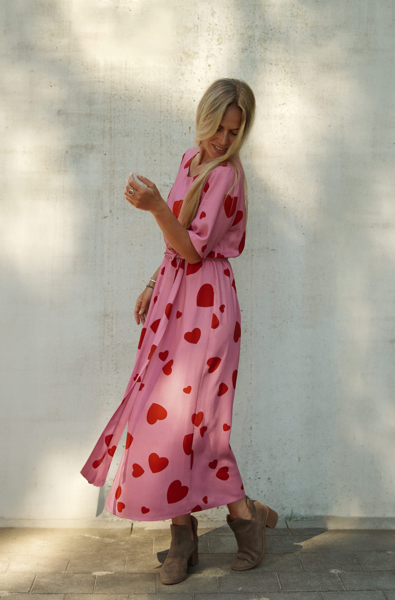 GRACE dress to niezwykle kobieca i wygodna sukienka o długości MIDI, z rozporkiem oraz paskiem. W pasie ma wszytą gumkę, dzięki której dobrze dopasowuje się do sylwetki.