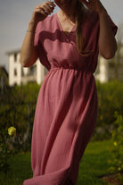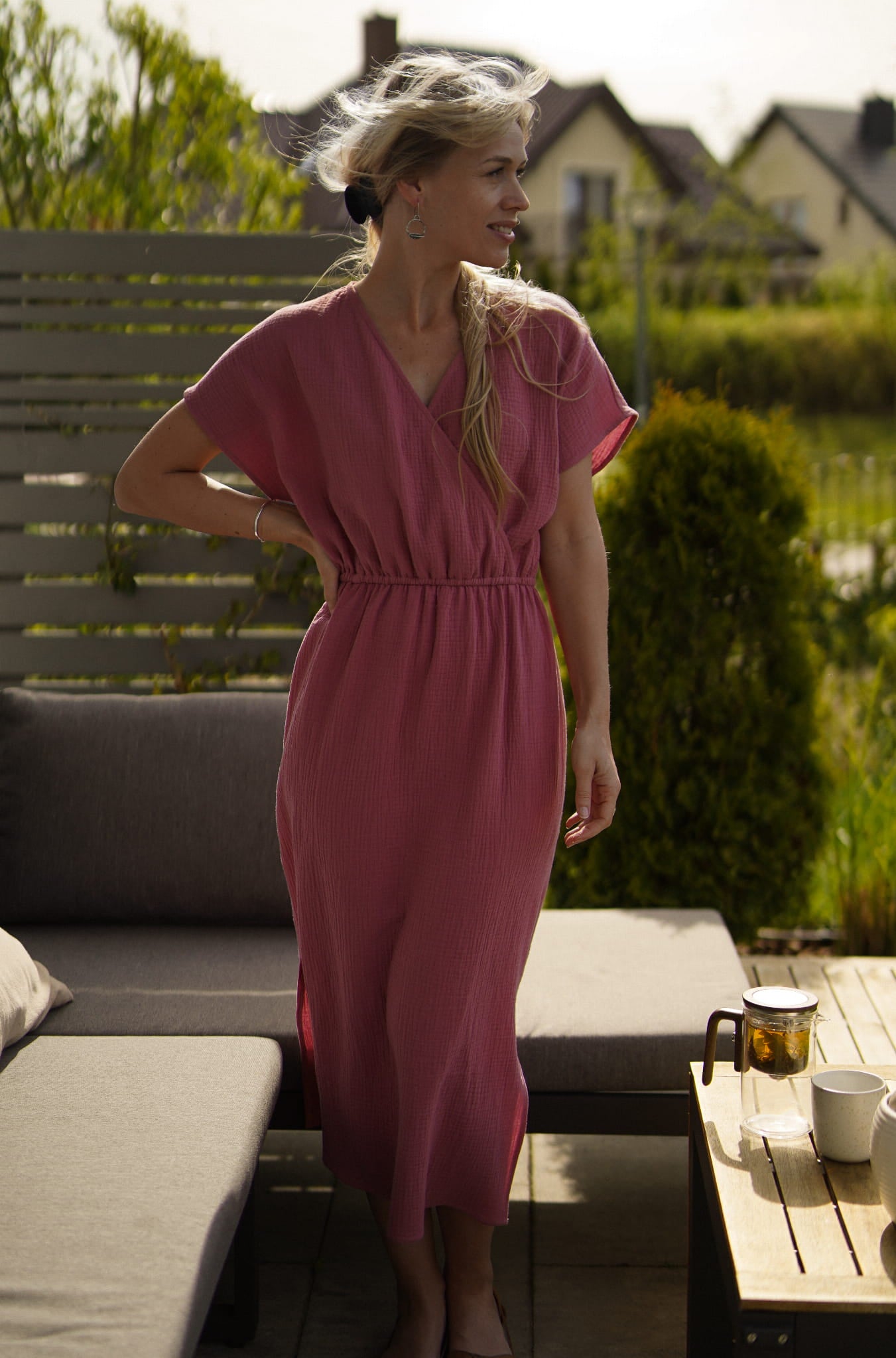 I AM ME dress to niezwykle kobieca i wygodna sukienka o długości MIDI. W pasie ma wszytą gumkę, dzięki której dobrze dopasowuje się do sylwetki. Dla wygody noszenia - ma dwa rozporki.