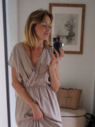 I AM ME dress to niezwykle kobieca i wygodna sukienka o długości MIDI. W pasie ma wszytą gumkę, dzięki której dobrze dopasowuje się do sylwetki. Dla wygody noszenia - ma dwa rozporki.
