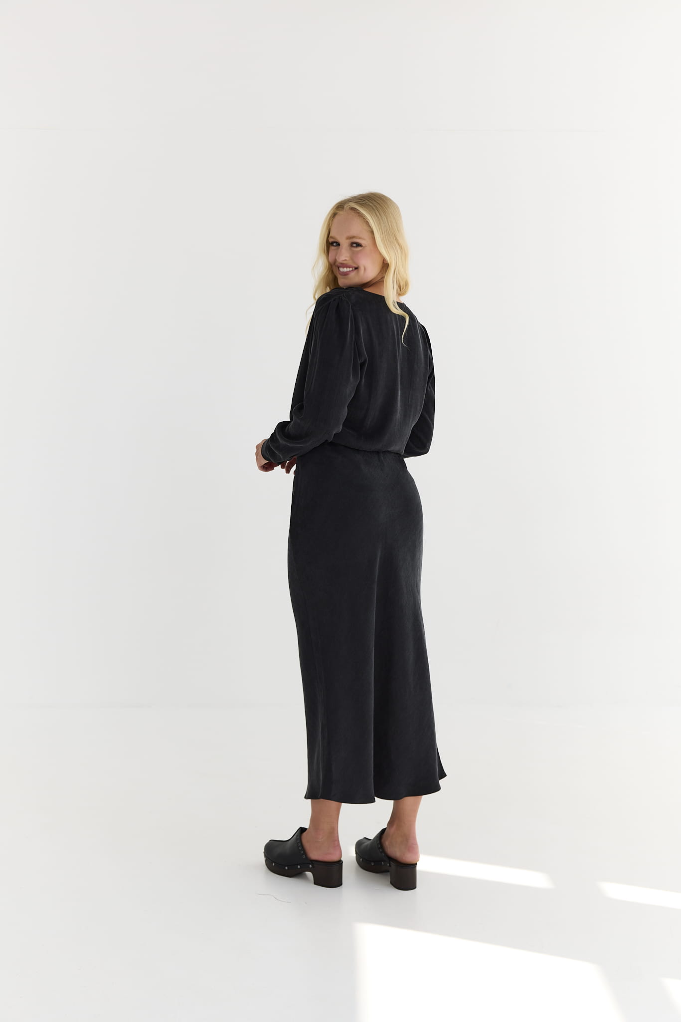 Uszyta z mięsistej tkaniny premium – wiskozy z lyocellem, która pięknie układa się w ruchu. Naturalnie oddychająca i miękka w dotyku, zapewnia komfort noszenia przez cały dzień, jednocześnie zachowując elegancki charakter. Idealna zarówno do minimalistycznych spodni, jak i w bardziej swobodnych zestawieniach.