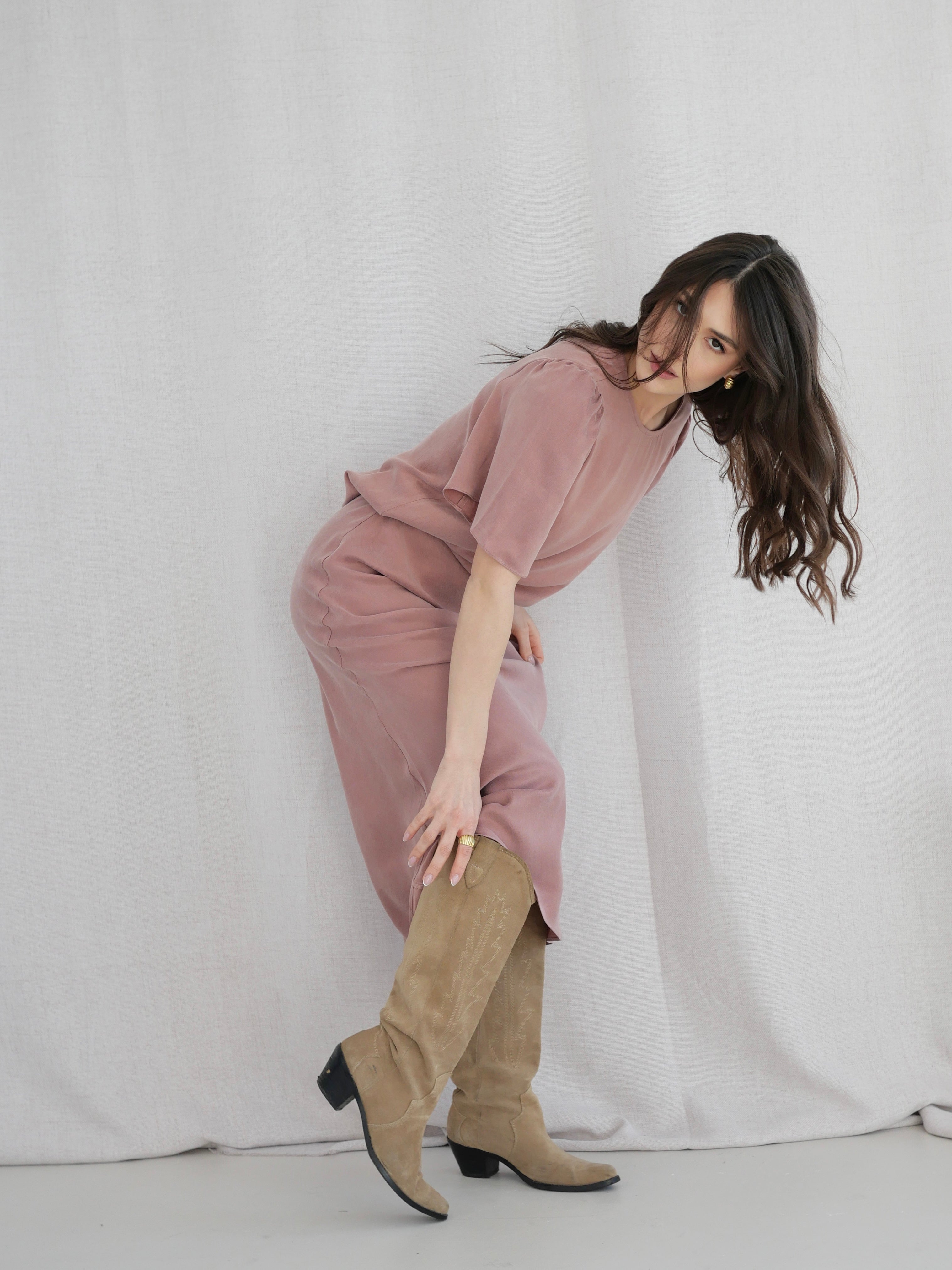 SPÓDNICA CHILL MIDI CUPRO ROSE
