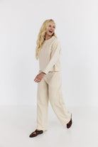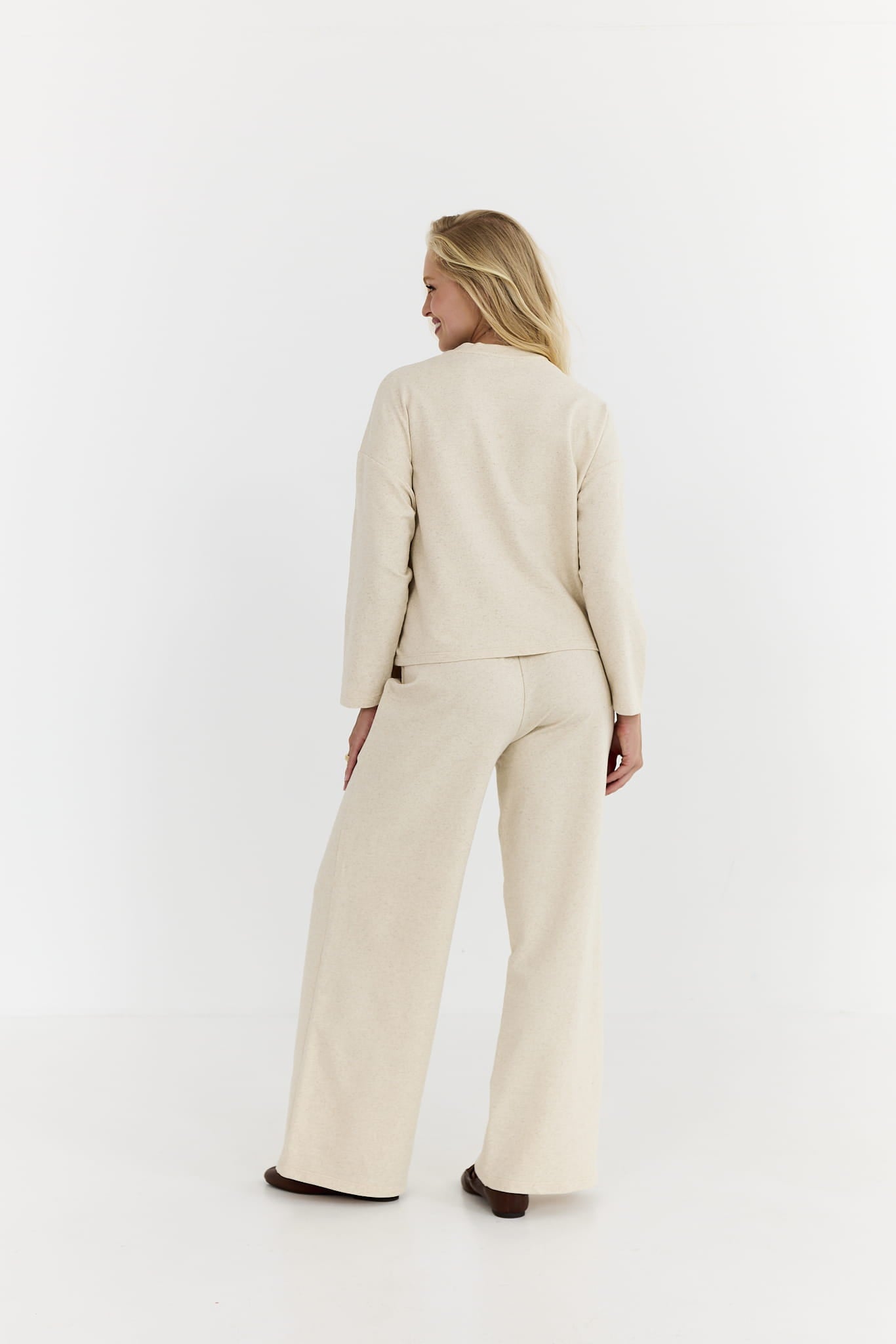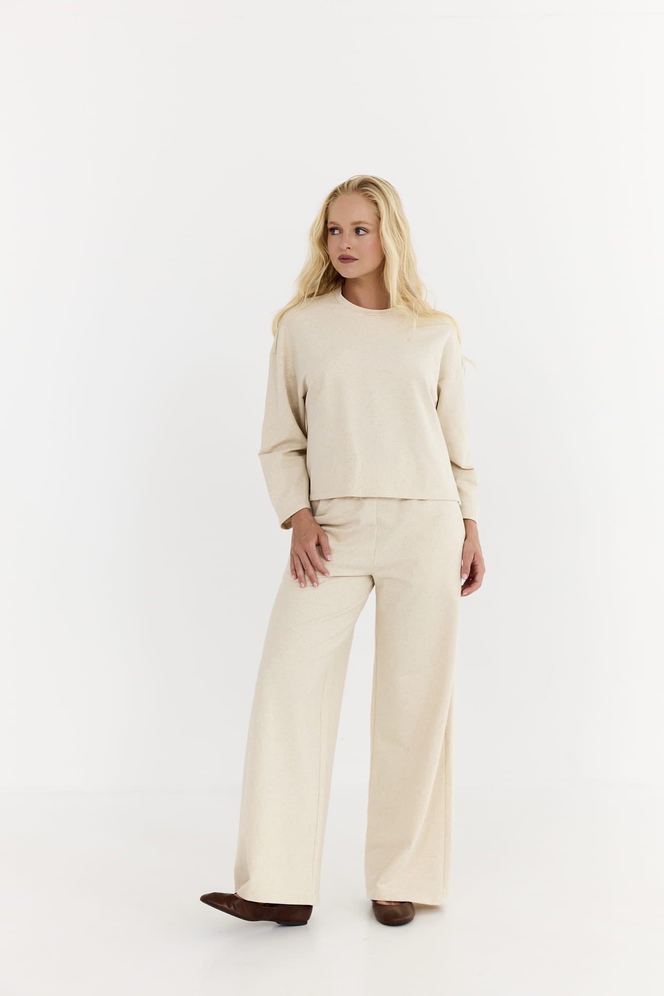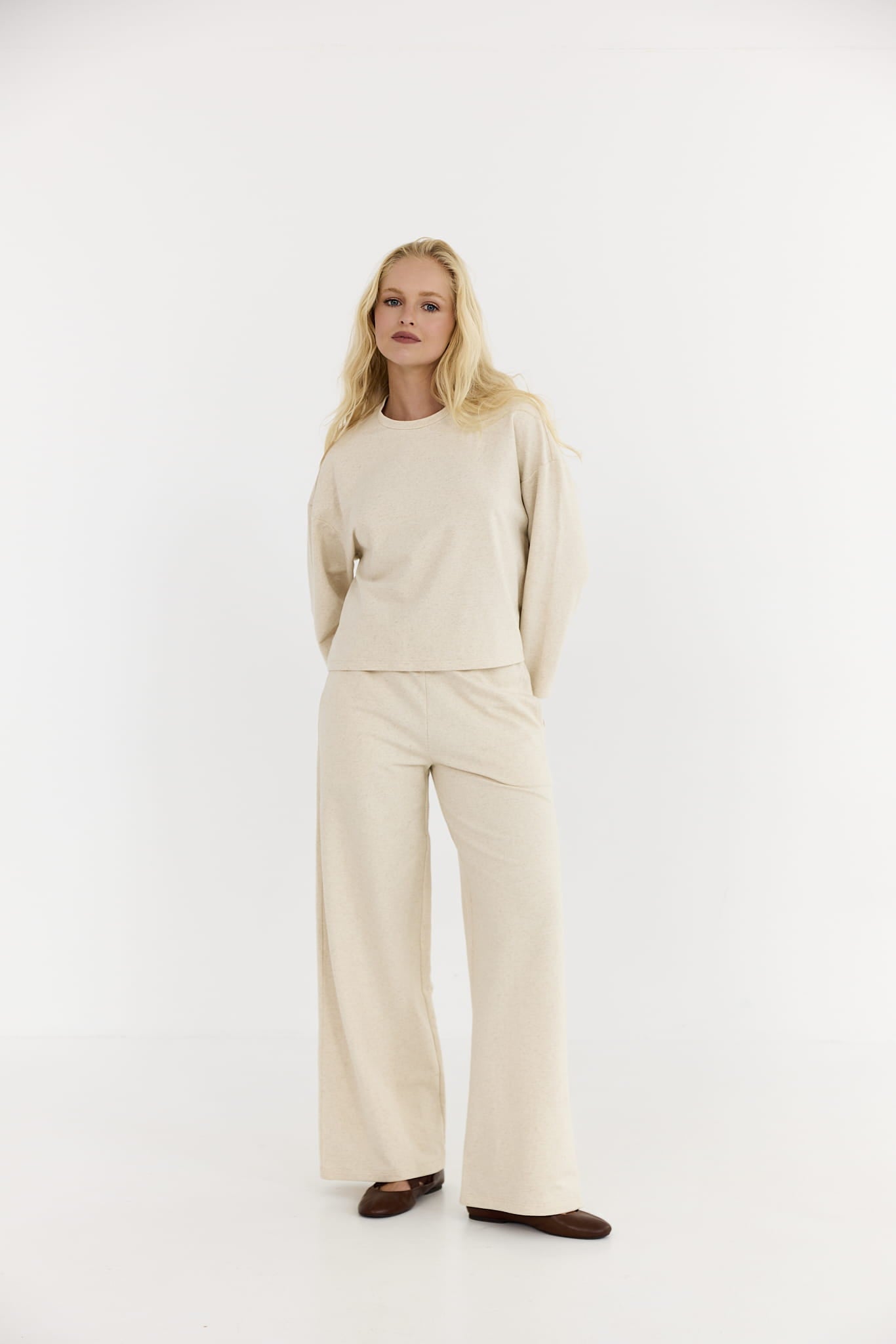 Szeroki, płynny krój i elastyczna talia – pełna swoboda ruchu w najwyższym komforcie. Luźny, a zarazem elegancki fason, z charakterem wprowadza lekkość i naturalny flow do każdej stylizacji. Wykonane z luksusowej mieszanki bawełny i lnu, która otula skórę miękkością i naturalnym komfortem. Mają charakter. Noś je według nastroju: