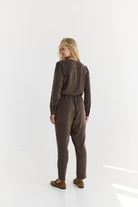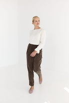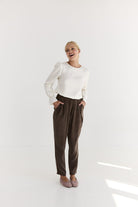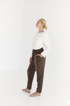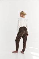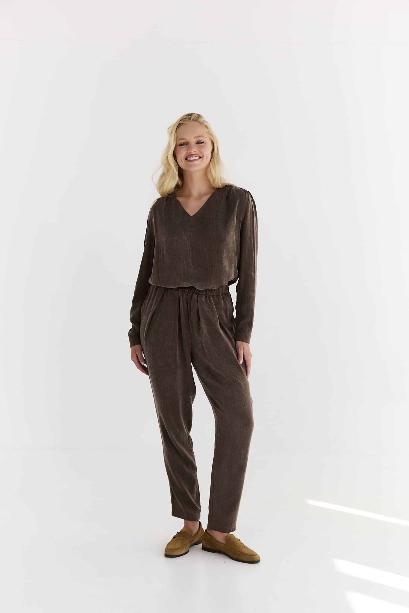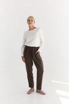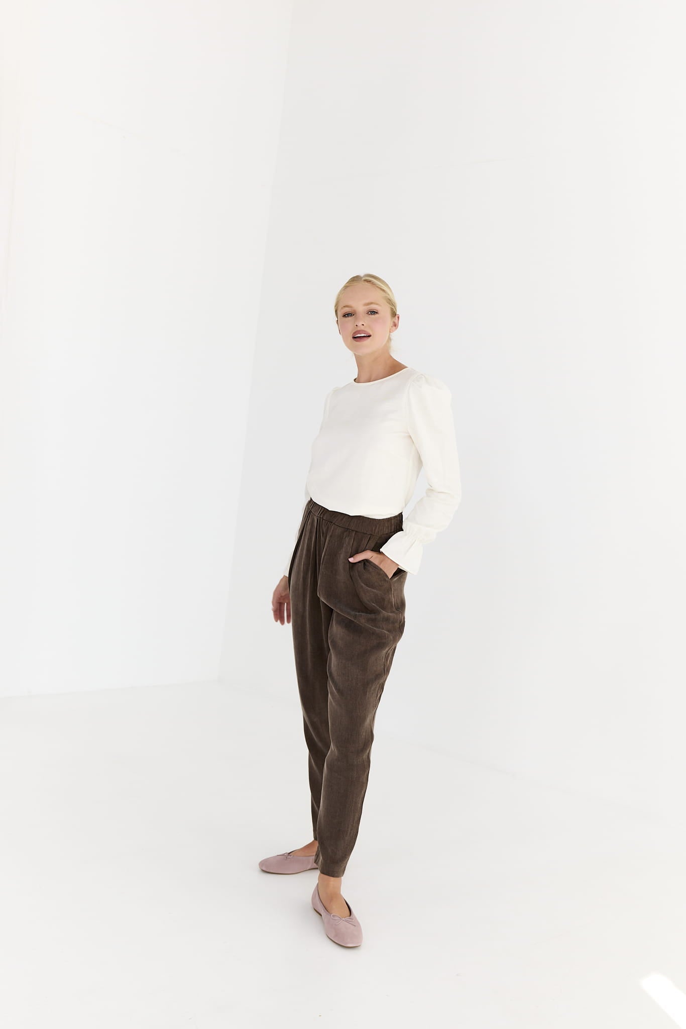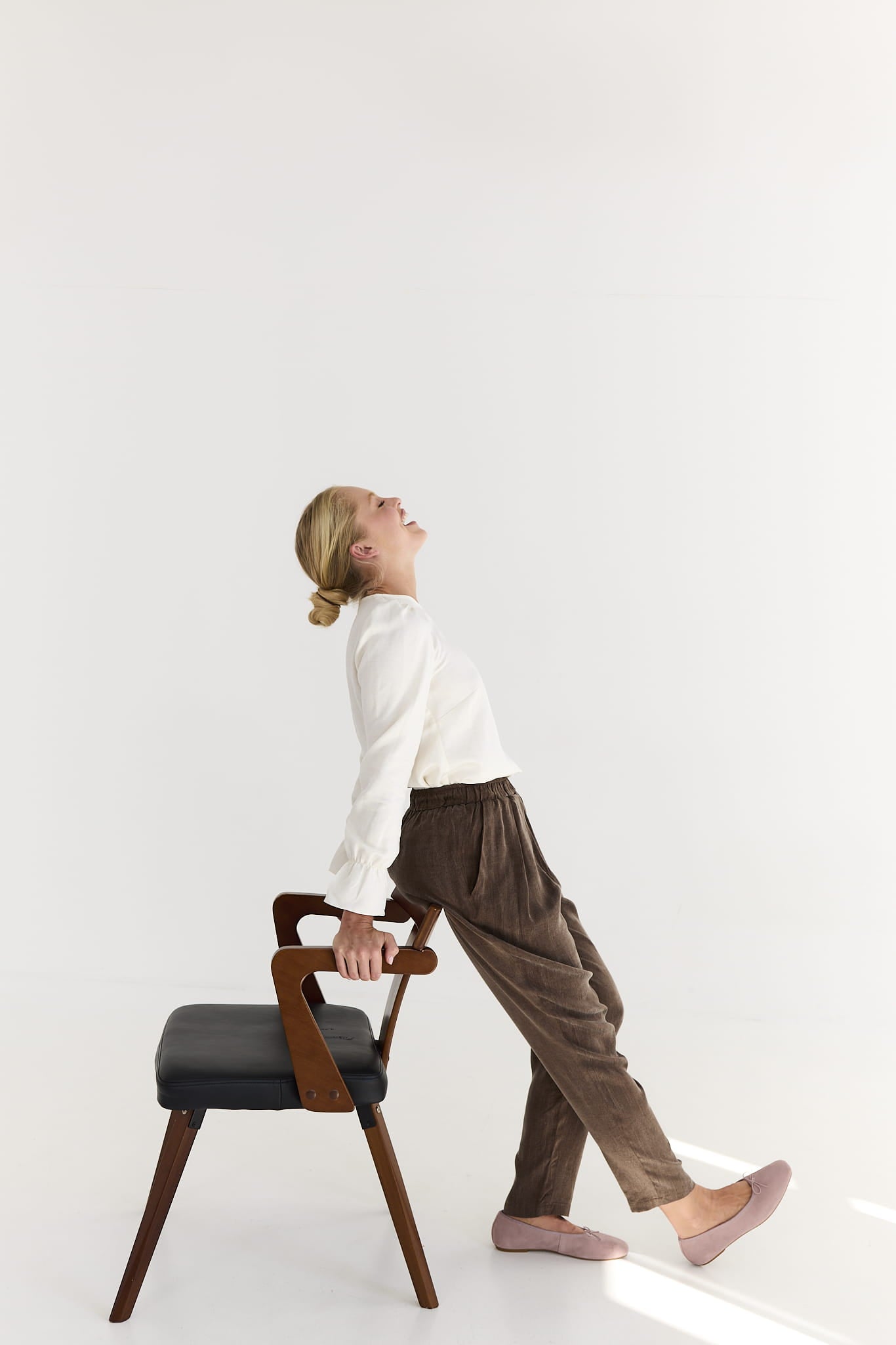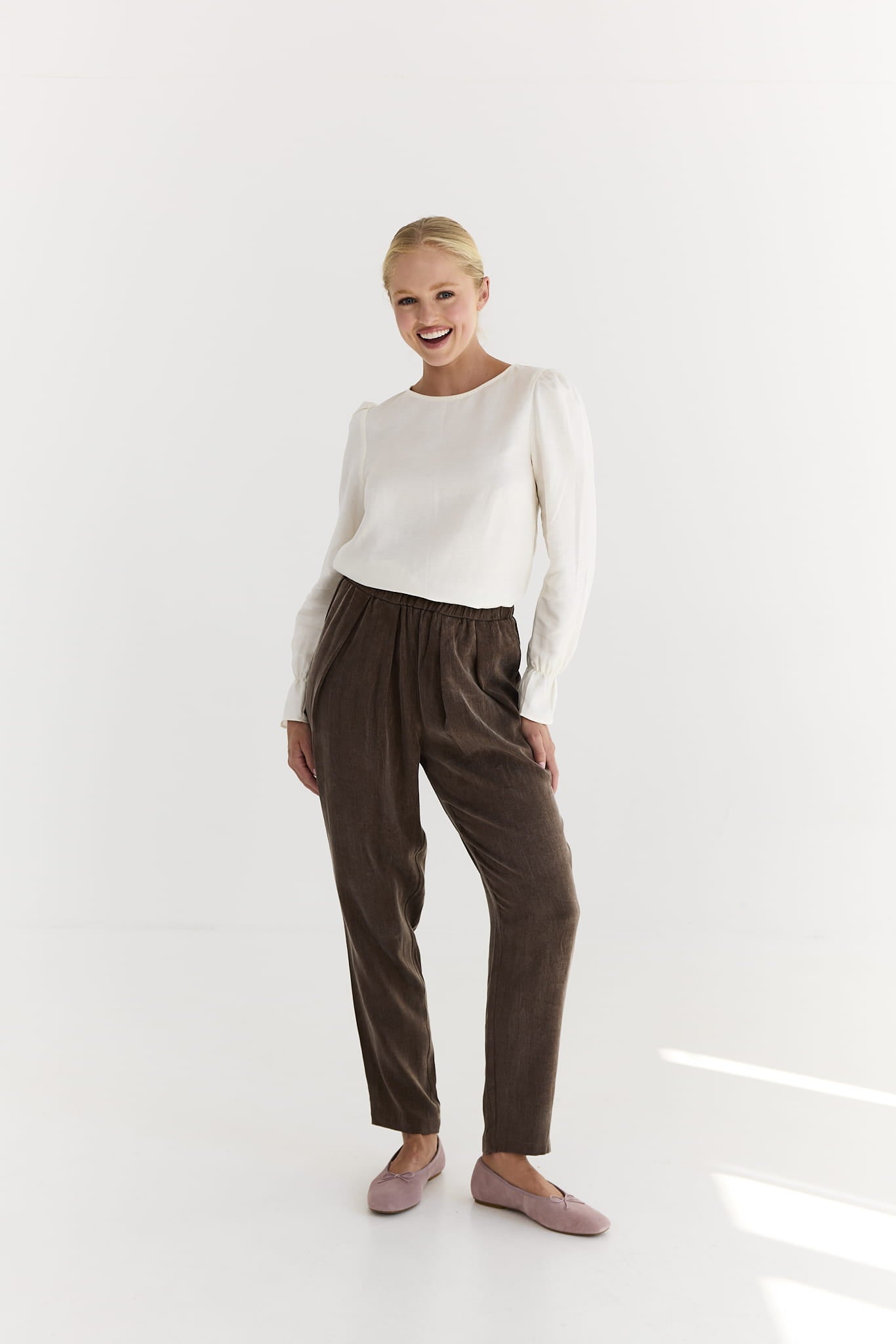 Uszyte z mięsistej tkaniny premium – mieszanki wiskozy i lyocellu. Naturalnie oddychające, miękkie w dotyku i doskonale układające się w ruchu. Komfort spotyka elegancję, a efekt to spodnie, które pasują zarówno do bluzy, jak i do koszuli.