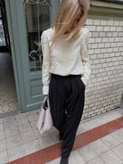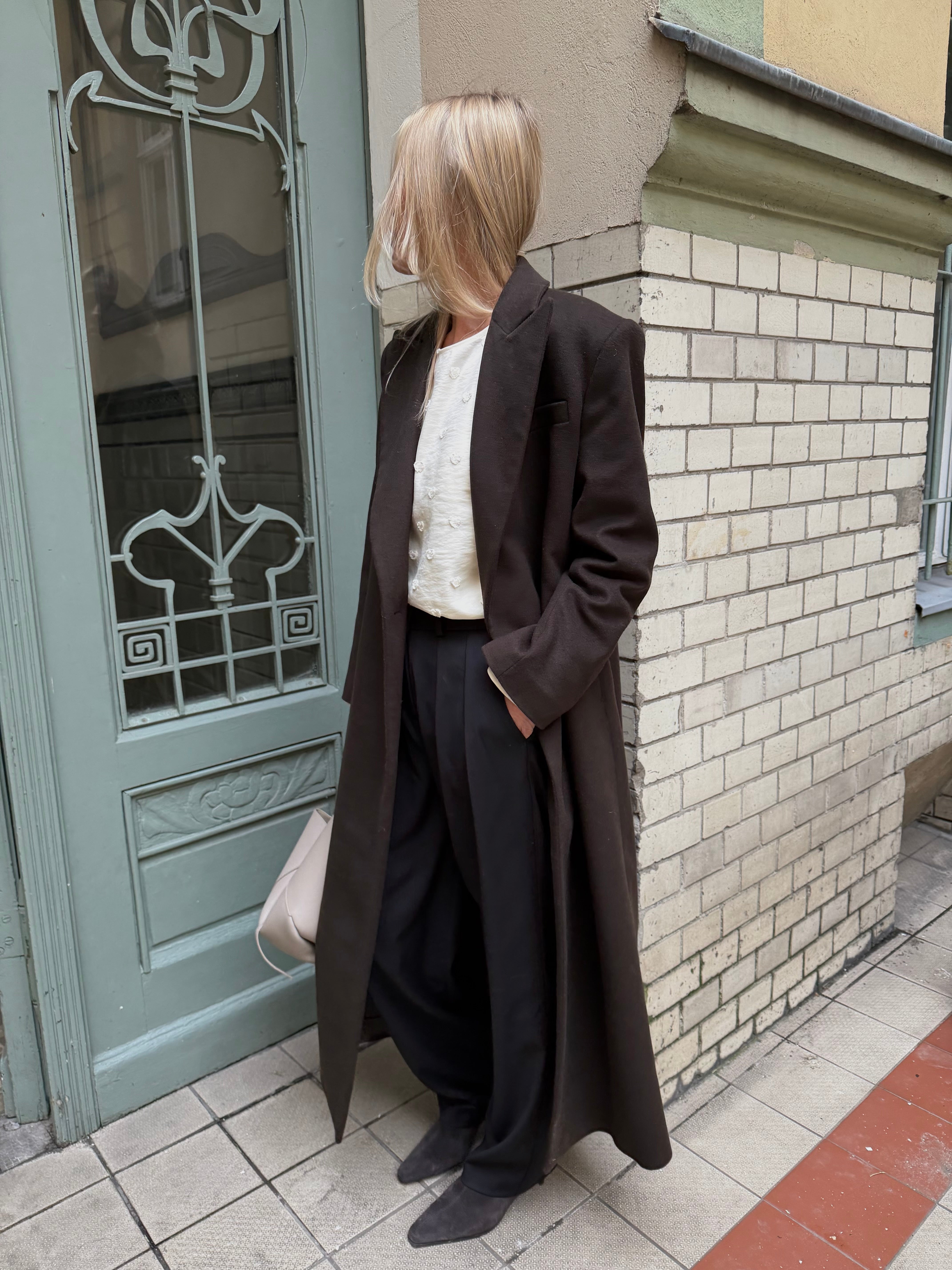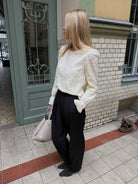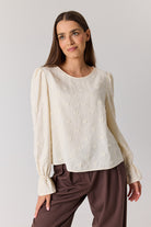 Collete to koszula, która łączy ponadczasową prostotę z subtelnym, kobiecym charakterem. Jej klasyczny krój został uzupełniony delikatnymi marszczeniami przy ramionach, które dodają sylwetce lekkości. Długie rękawy zakończone miękką gumką tworzą elegancki efekt dzwonka, a dekolt typu łódka subtelnie podkreśla linię szyi.