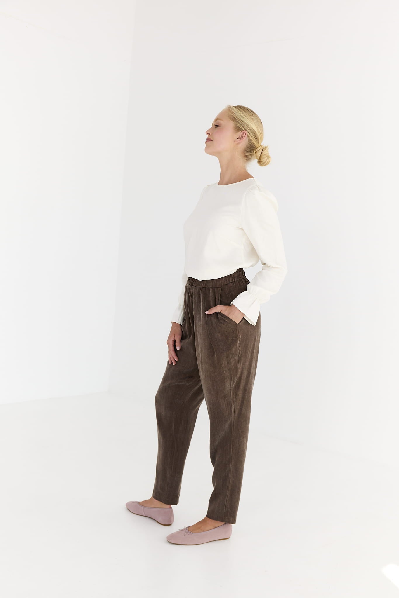 Uszyta z naturalnej tkaniny łączącej wiskozę i len – delikatna, przewiewna i szlachetna w dotyku. To model, który otula komfortem, a jednocześnie wprowadza do garderoby nutę nowoczesnej elegancji. Zdecydowanie oferuje codzienny komfort w minimalistycznym, premium wydaniu.