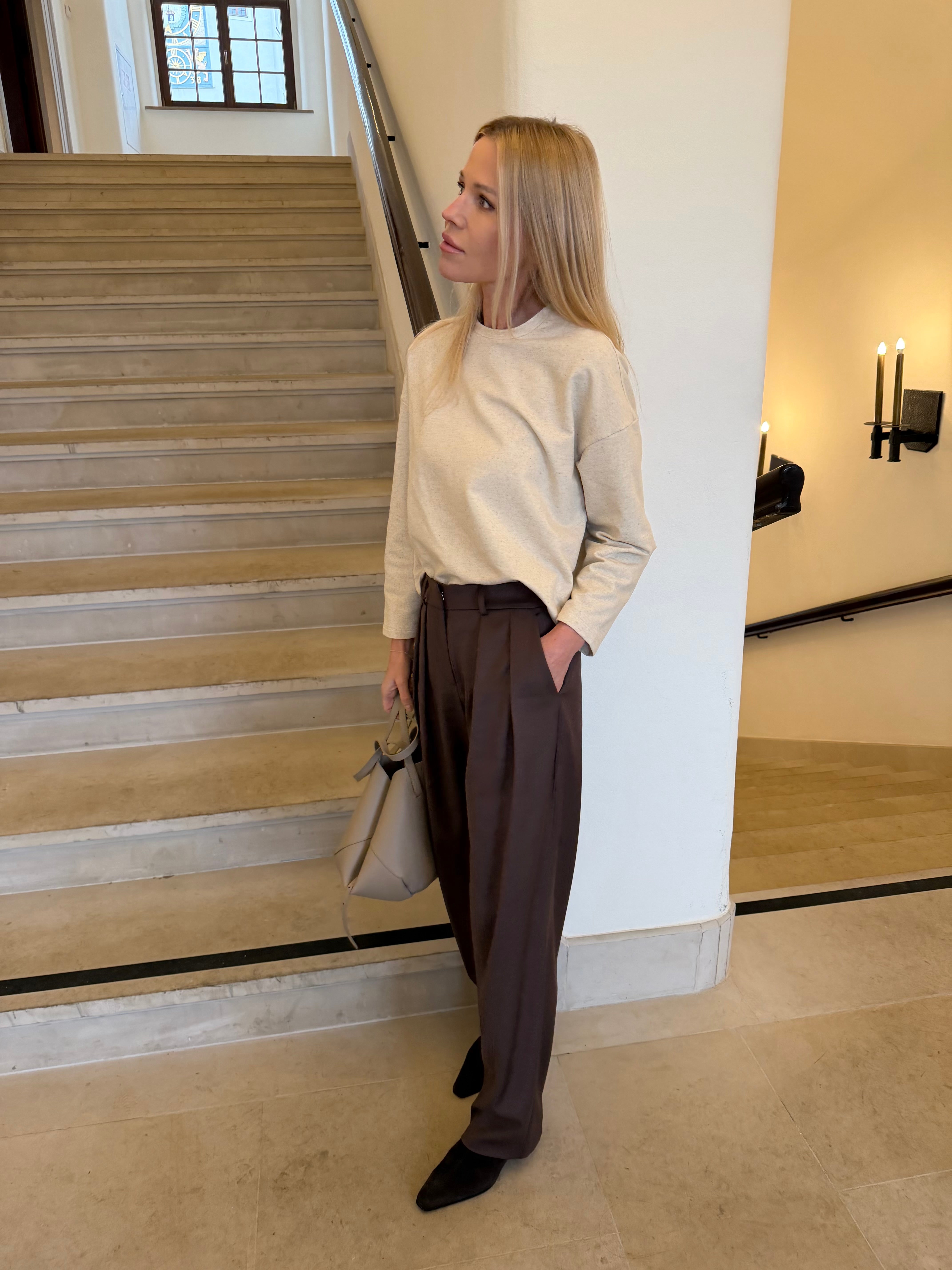Spodnie Classic towarzyszą Ci od porannej kawy, przez spotkania w biurze, aż po wieczorne wyjścia. Załóż je z koszulą, marynarką lub ulubionym swetrem i poczuj, jak codzienna elegancja staje się naturalna i lekka.